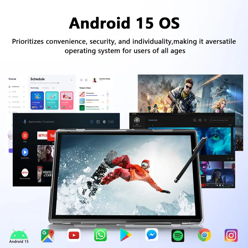 【Android 15.0 Tablet】Peicheng tablet adopts the 2026 latest version of android 15.0 system and has passed Google GMS certification, The android 15 tablets offer personalized security systems, lightning fast application launches, super smooth gaming, and stunning netflix multimedia experiences.
