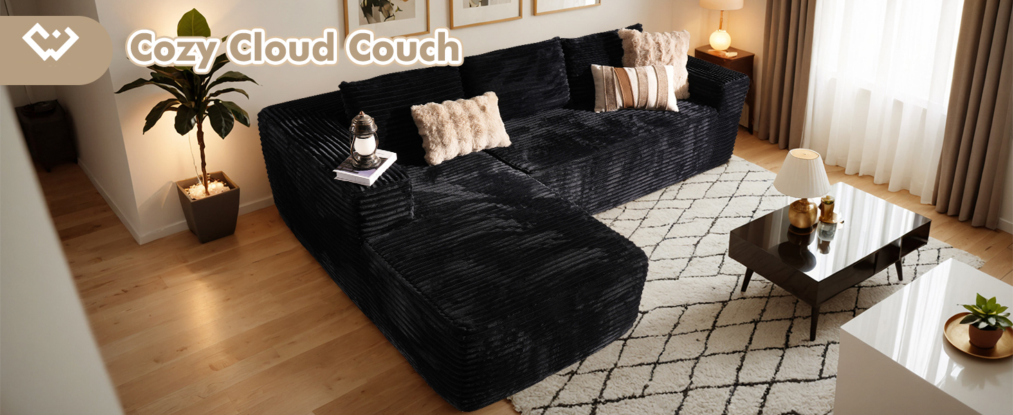 DEEP SEAT SOFA: Our oversized comfort cloud sofa comes with a spacious 57.1'' chaise lounge, and a comfortable 27.56'' deep seat. The cloud couch is filled with high resilience foam and premium springs for soft comfort and a cloud-like experience. With a weight capacity of 1200 lbs, it is ideal for family gatherings, couples and groups, perfect for any home.