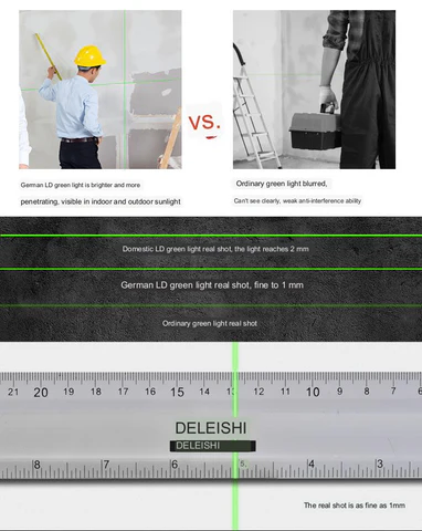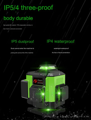 is packed with features to make any job easier. Its German imported light source, 5800mAh battery, intelligent chip, dustproof and waterproof material, and one-key line-crossing are designed to provide reliable, accurate results. There's even smart remote control and brighter green light so you can work with confidence indoors and outdoors. Plus, you get automatic leveling for perfect results every time.